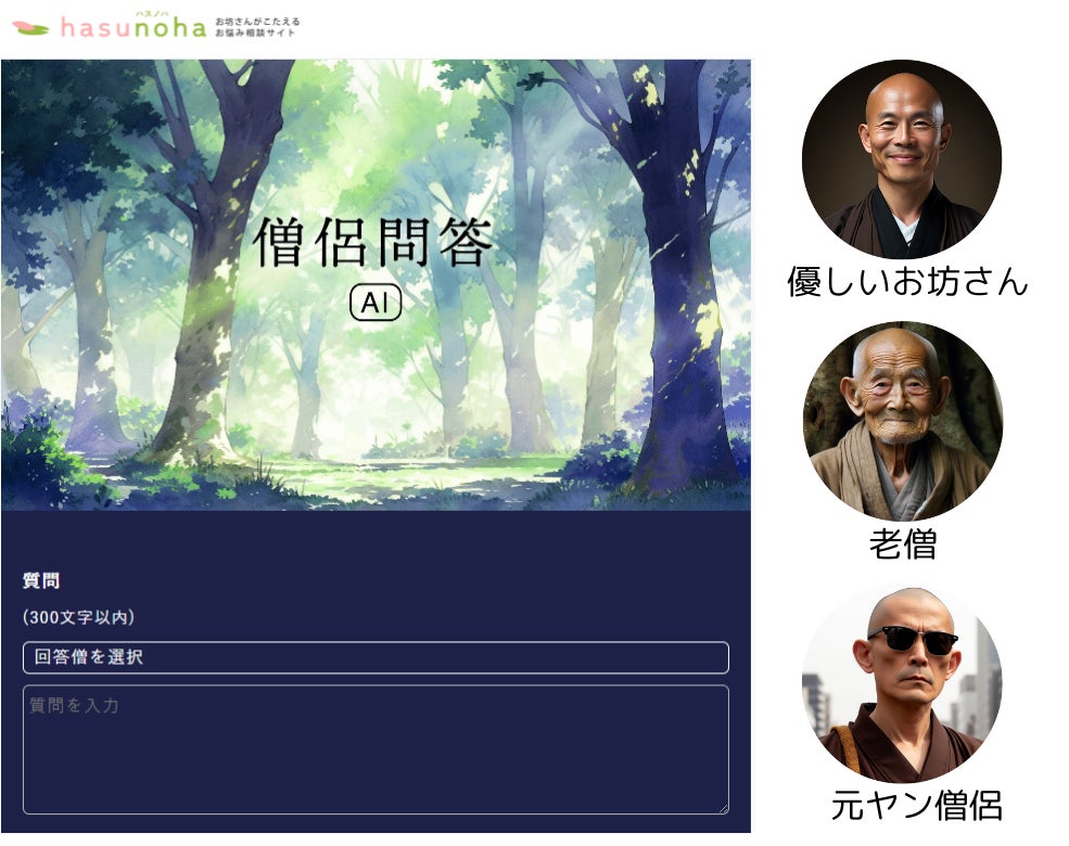 お坊さんにスマホで相談できるQ&Aサイト「hasunoha(ハスノハ)」(代表:堀下剛司。ロータスリーフ合同会社CEO、共同代表:井上広法。浄土宗光琳寺住職)は、GPT-4を搭載したAI問答システム「AI僧侶問答」をリリースしました。
