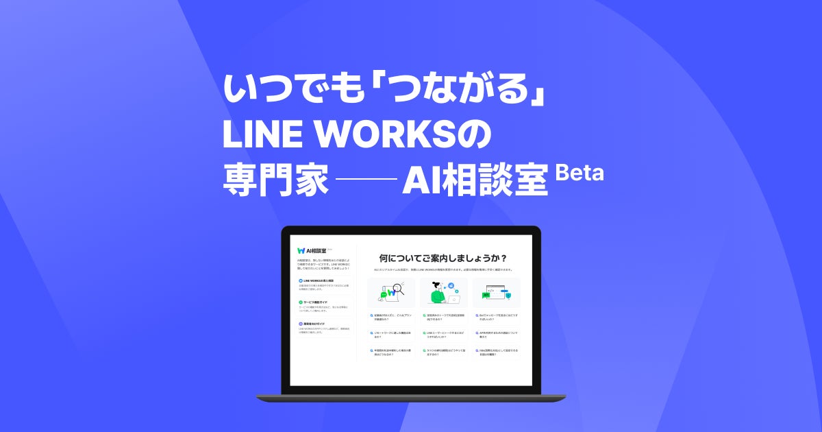 ビジネス現場のコミュニケーションツール「LINE WORKS」を提供するLINE WORKS株式会社(本社:東京都渋谷区、共同代表:島岡 岳史、増田 隆一、以下当社)は、「LINE WORKS」サービスに関するさまざまな相談や営業活動に役立つ情報を生成AIによって支援するAIエージェント「AI相談室」を、本日より「LINE WORKS」公式WEBサイトに開設したことをお知らせいたします。