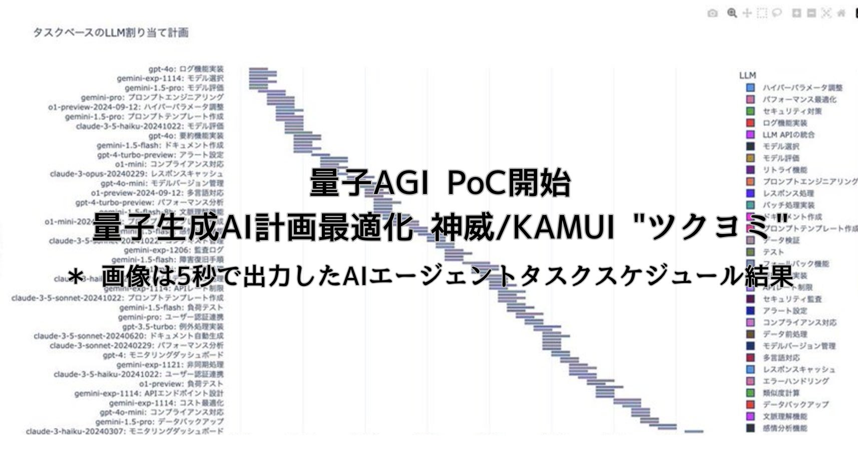 株式会社KandaQuantum(東京都千代田区麹町、代表取締役社長:元木大介)は、次世代AGI開発基盤「神威/KAMUI」(既報) の進化系として、量子スケジュール最適化プロジェクト「ツクヨミ」を開始します。本システムは、量子コンピューティングを活用してAIエージェントのタスクを最適化し、効率的なリソース割り当てを実現します。さらに将来的には量子AGIの実現に向けたPoCを開始します。