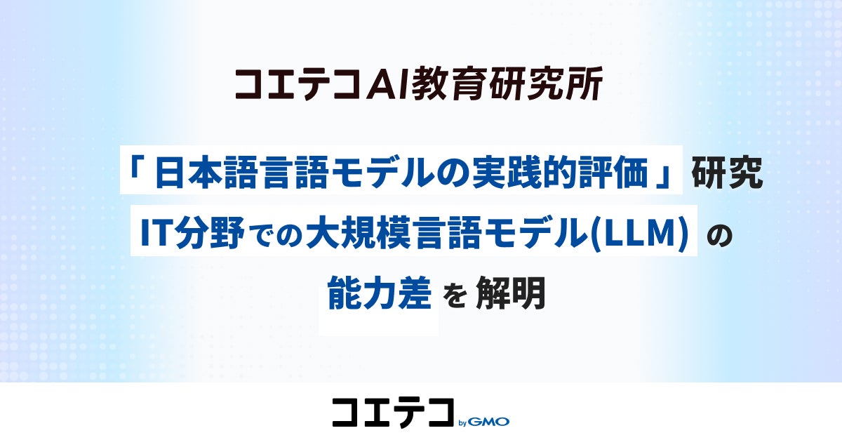 GMOインターネットグループのGMOメディア株式会社(代表取締役社長:森 輝幸 以下、GMOメディア)は、このたび「大規模言語モデルの日本語実践的評価:JGLUEとIT パスポート試験を用いた比較分析」をテーマとした研究を実施しました。大規模言語モデル(LLM)が持つ推論能力(正確な解答を導き出す力)や問題解決能力の特徴を分析することで、LLMごとのIT分野における能力差を解明しました。