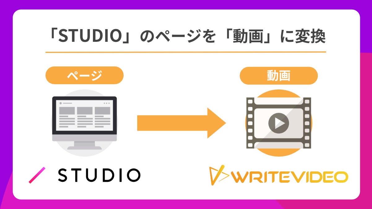 動画自動生成ツール「WriteVideo」は、この度「STUDIO」で制作したWEBページをワンクリックで「動画」に変換できる機能をリリースしましたのでお知らせします。