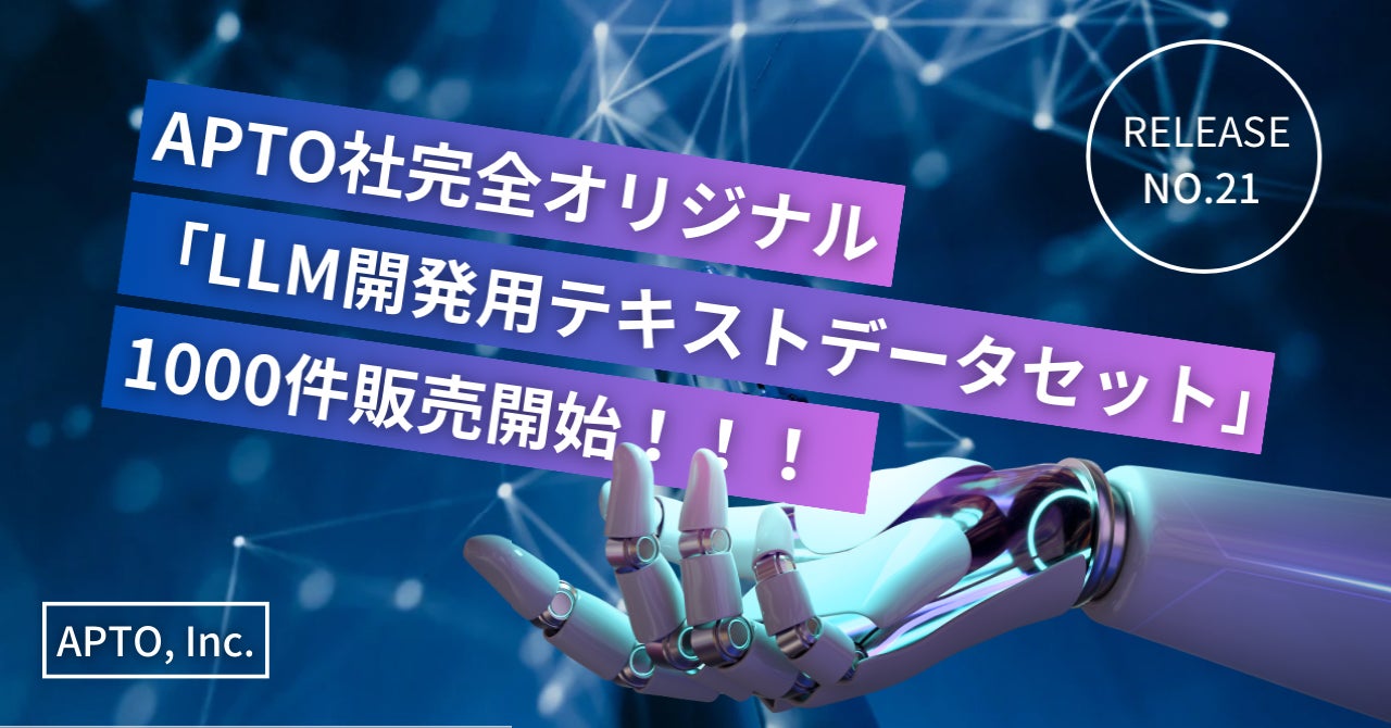 「権利」「プライバシー」を最大限に保護した、APTO社完全オリジナル「LLM開発用データセット」1000件を販売開始しました。