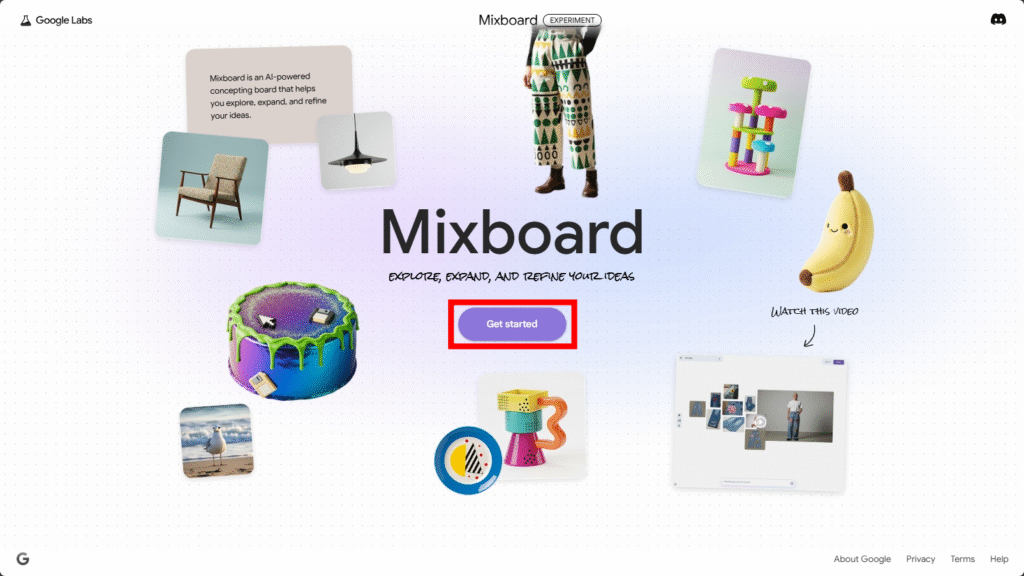 1.Google LabsのMixboard公式ページを開く。