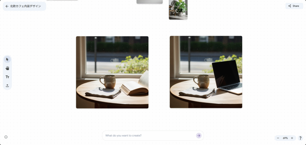 PinterestやCanvaが「集めた素材を並べる」場だとすると、Mixboardは「そもそもの素材をAIに作らせながら考える」ための場所、という位置づけになります。