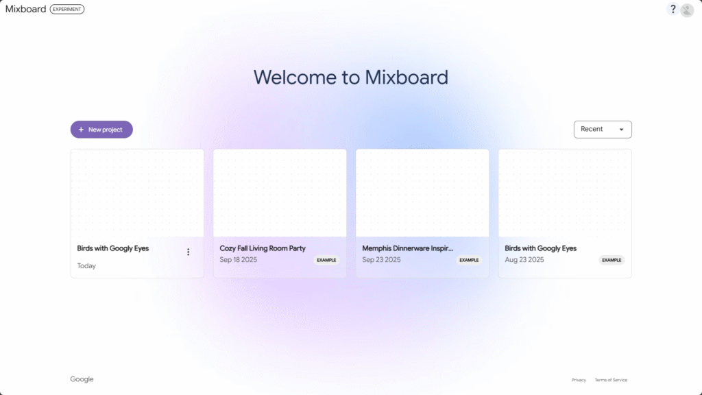 Mixboardは、テキストプロンプトやテンプレートを起点に、アイデアに沿った画像やテキストを自動で並べたボードを生成し、そこからドラッグ&ドロップや自然言語で編集しながらコンセプトを固めていくためのツールです。