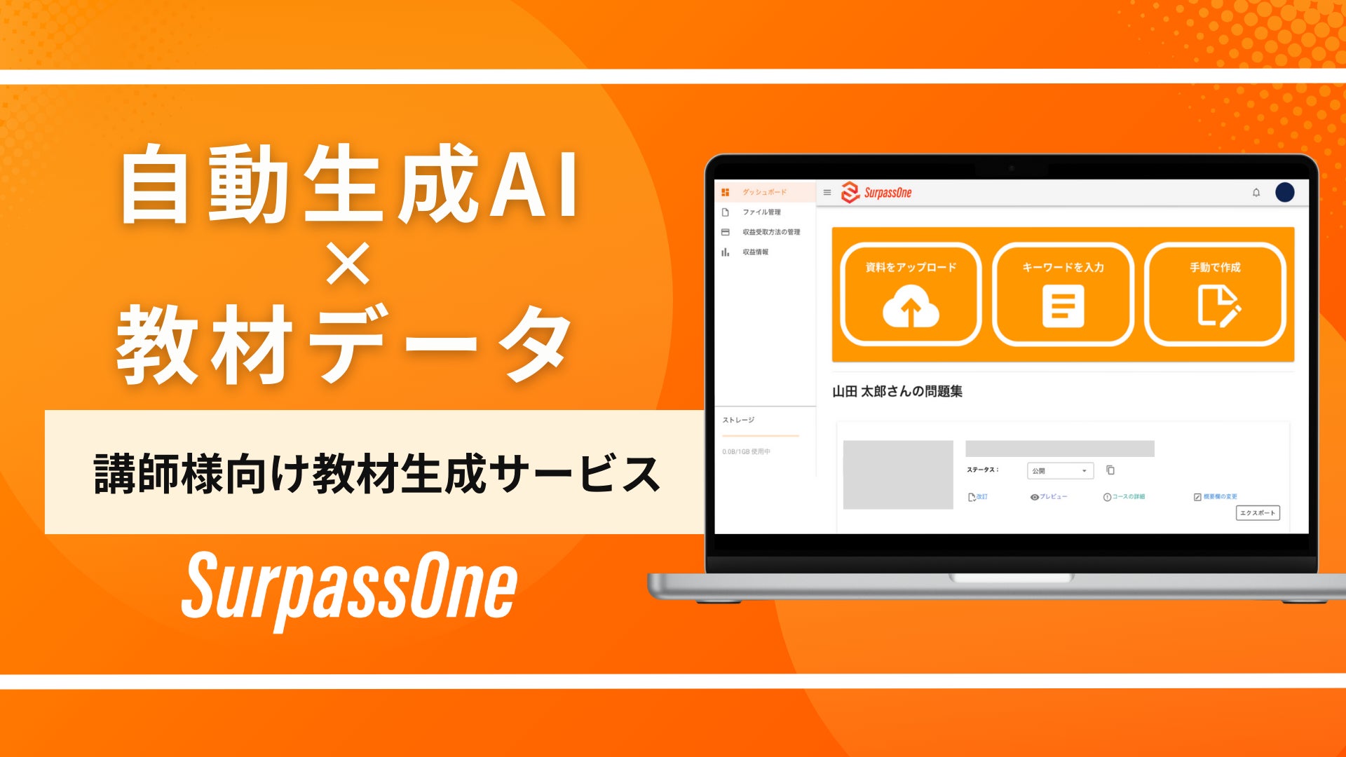 学習サービスSurpassOneの教材生成の方法に大きな革新が加わりました。新機能「資料による教材生成」により、資料に基づいた問題集を生成できるようになりました。これにより、生成AIの精度のバラつきや手動作成の負担が軽減され、より一貫性のある問題集の作成が可能です。8月には技術特許を取得し、問題生成の精度向上が実現しました。企業向けのカスタマイズ開発にも対応しており、SaaS機能の導入やe-learning、LMS、生成機能のカスタマイズを承っています。