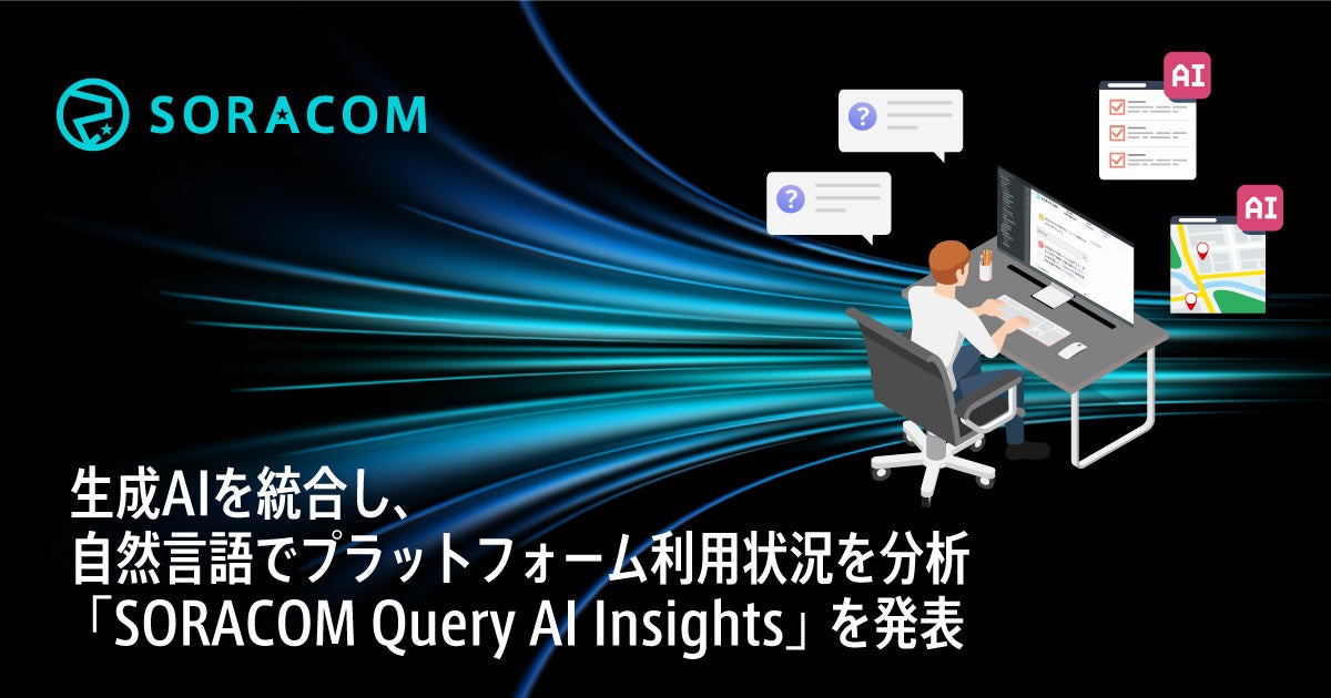 株式会社ソラコム(本社:東京都港区、代表取締役社長 玉川憲)は、IoTデータの分析基盤サービス「SORACOM Query(ソラコム クエリー)」にSORACOMのプラットフォームデータを読み込めるようにしました。さらに、生成AIを用いて自然言語で質問し、これらのデータを分析できる「SORACOM Query Intelligence」を発表し、2024年7月17日より利用希望者の受付を開始します。