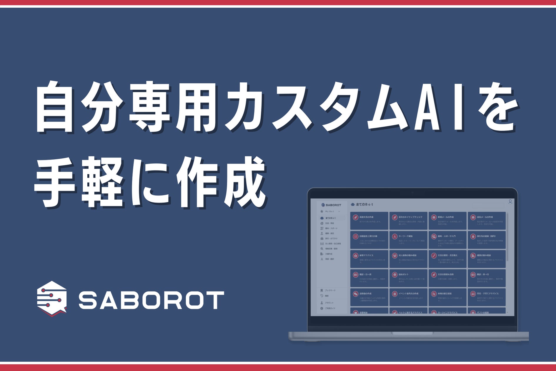 SABOROT(代表者:海老原真一)は、GTP-4を利用したAIボットサービスを提供しています。自分専用にカスタマイズしたAIを簡単に作成できる「My Bot」機能を正式リリースしました。この機能は無料プランでもご利用いただけます。