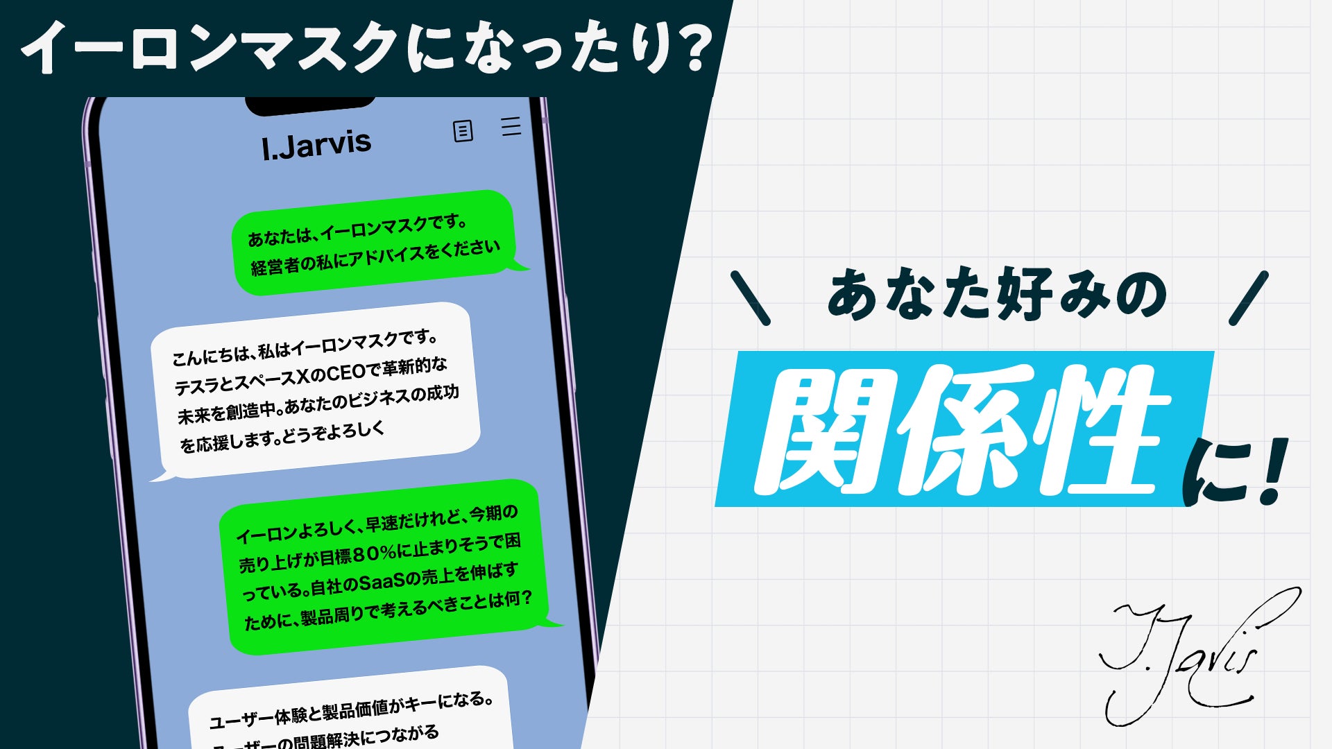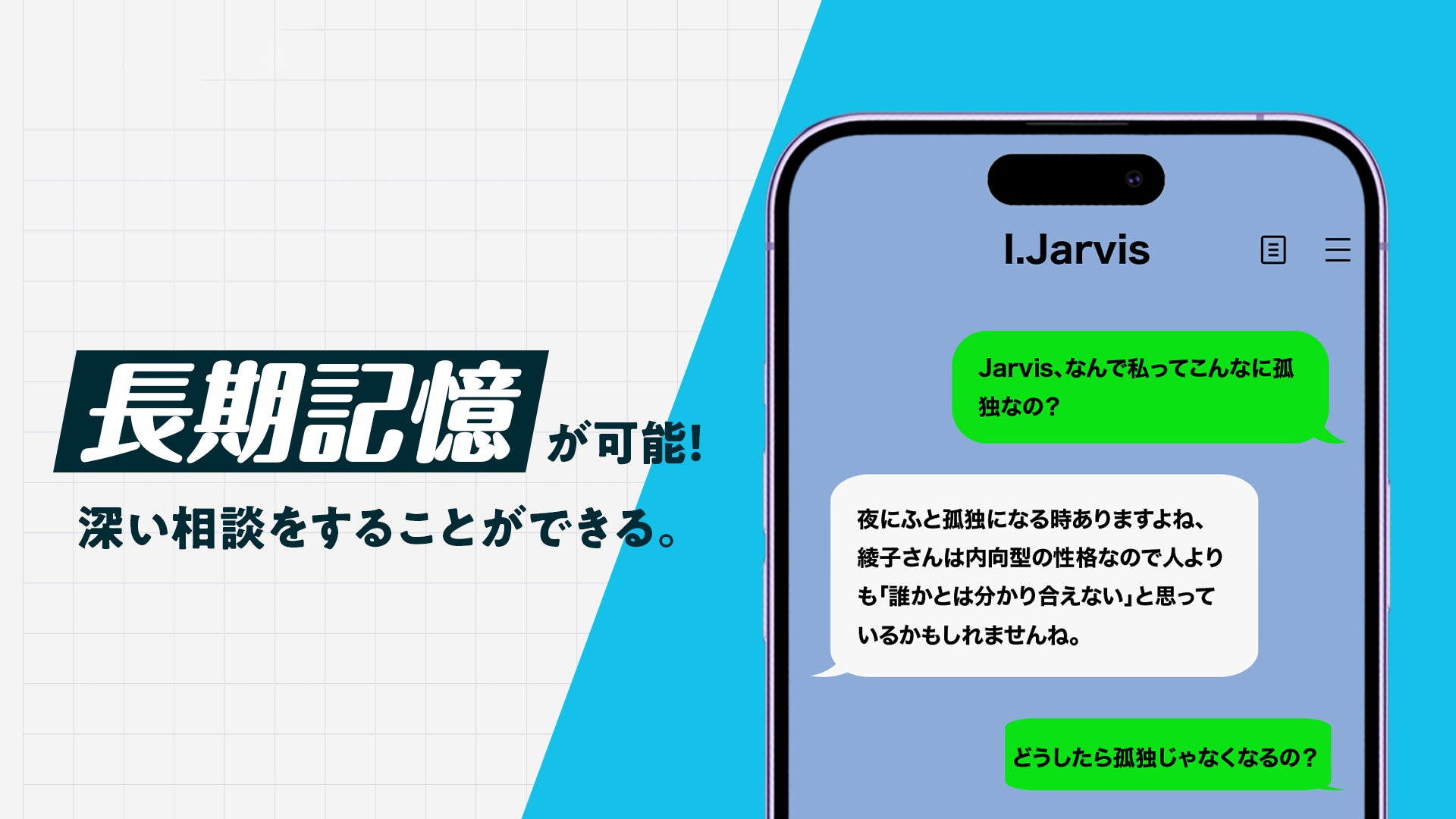 I.Jarvisは、あなたと会話を重ねあなたを理解して、最も適切なアドバイスをくれるパートナーAIです。これは単なるチャットボットではなく、あなた自身のコーチでもあります。