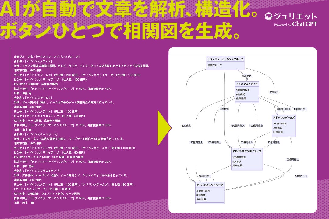 フローチャート生成に続く新機能。複雑な情報もわかりやすく伝える