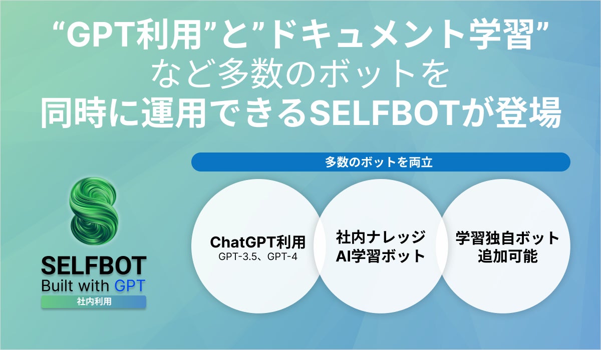 SELF株式会社(本社:東京都新宿区、代表取締役:生見 臣司、以下:SELF)は、自社開発のコミュニケーションAIとOpenAI社が展開する「ChatGPT」との相互連携システム「SELFBOT」を開発・運用しています。このたび、ドキュメント学習に加え、ChatGPTの利用も可能となるサービスをオープンいたしました。