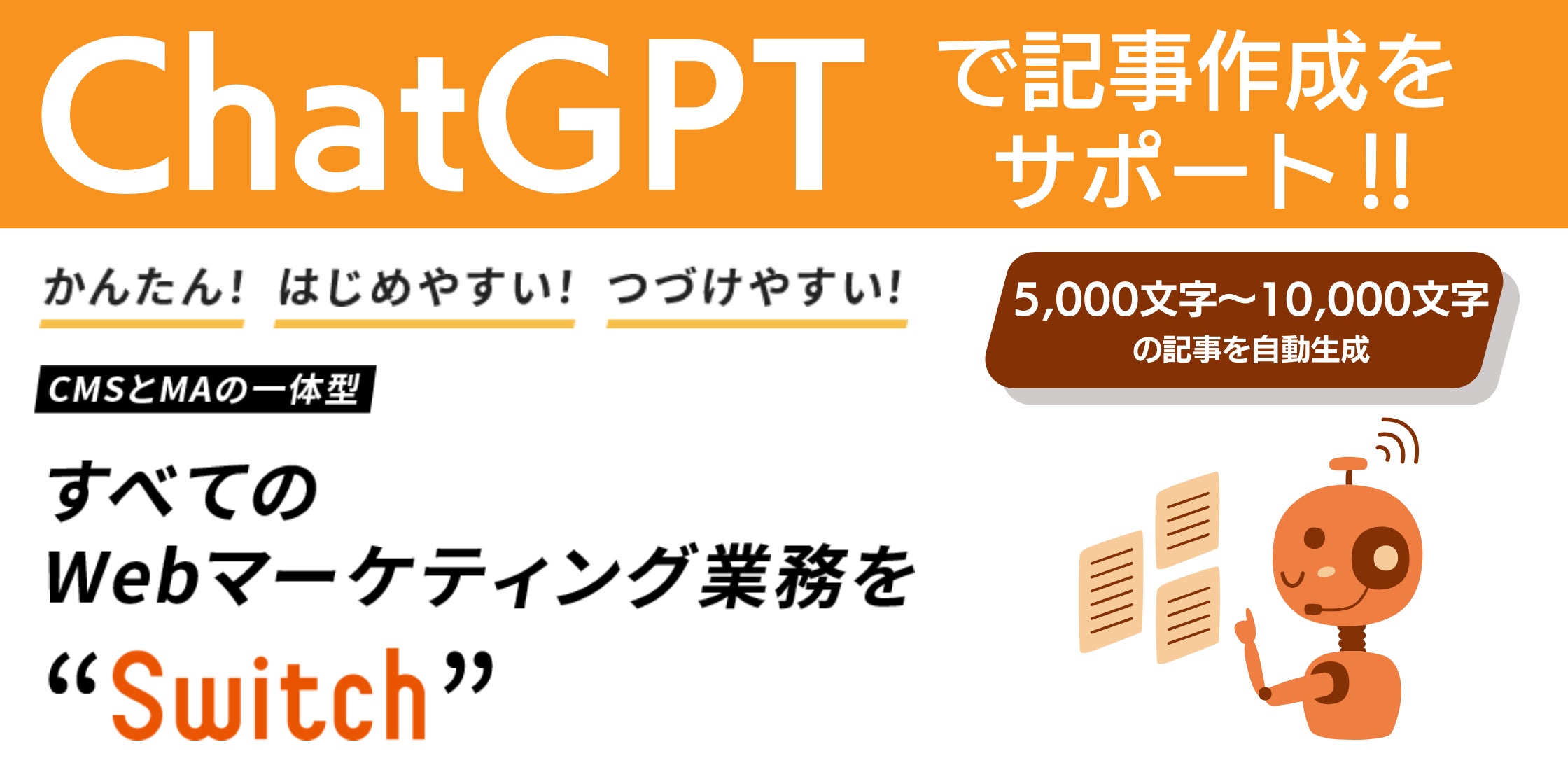 BtoBマーケティング支援を行うProFuture株式会社(本社:東京都千代田区、代表取締役社長:寺澤 康介)は、自社サービスであるCMSとMAの一体型ツール「Switch Plus(スイッチ プラス)」において、ChatGPTと連携した記事作成機能を搭載したことをお知らせいたします。本年7月にリリースした、ChatGPTによるメール作成サポートの機能に加え、今回は新たに、5,000~10,000文字のSEO記事を生成できる機能も搭載しました。企業のブログやオウンドメディアの記事投稿にもご活用いただけます。