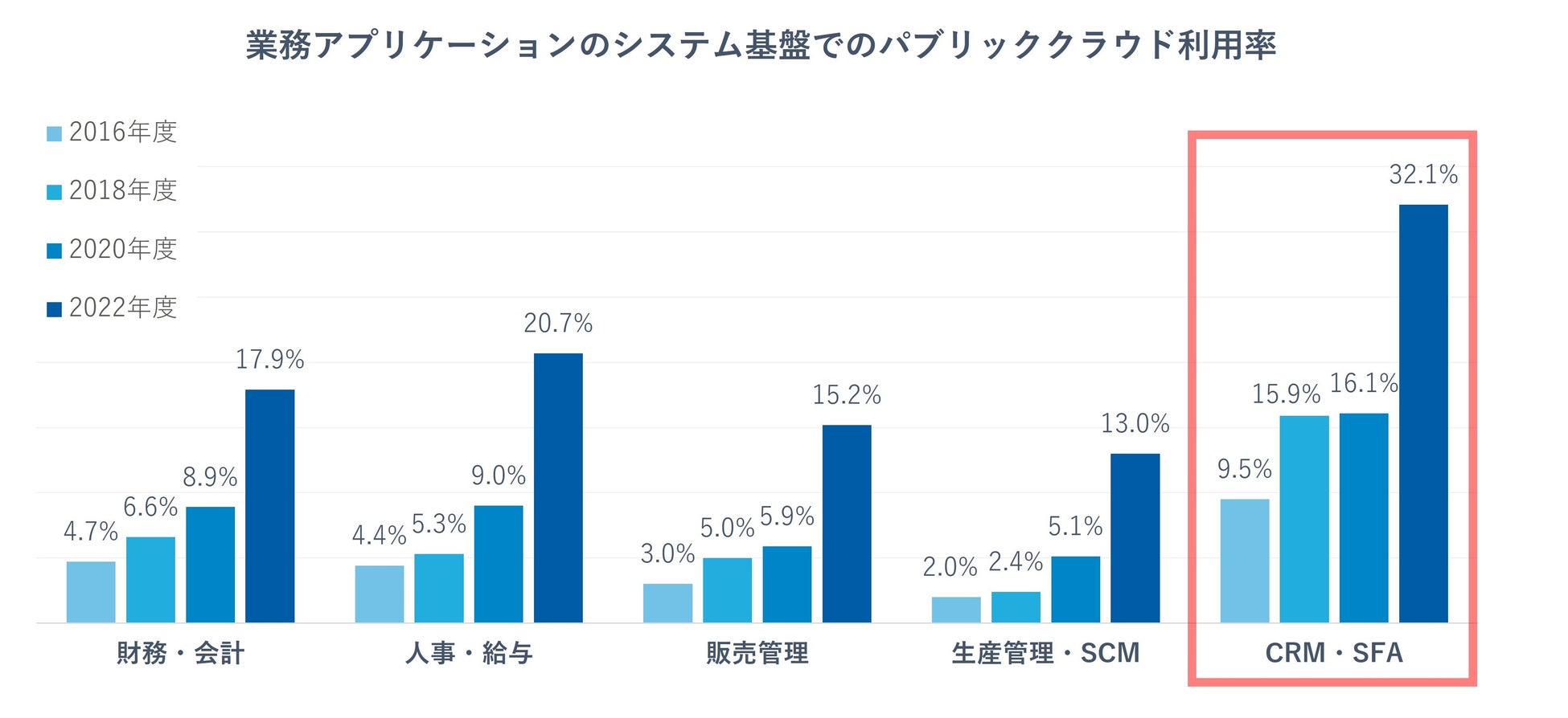 参照:矢野研究所「ERP及びCRM・SFAにおけるクラウド基盤利用状況の法人アンケート調査を実施(2022年)」https://www.yano.co.jp/press-release/show/press_id/3213