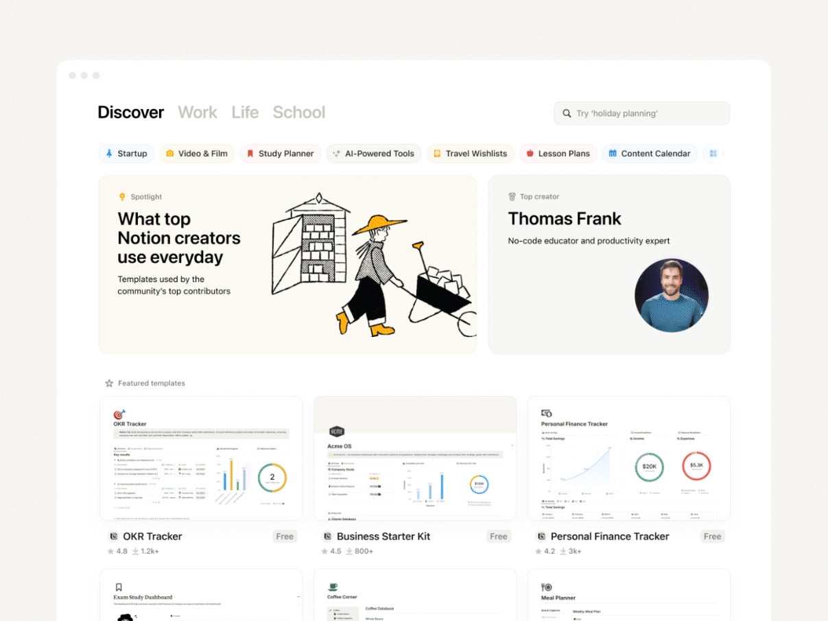 Notionテンプレートの検索と共有のためのリデザインされたプラットフォーム