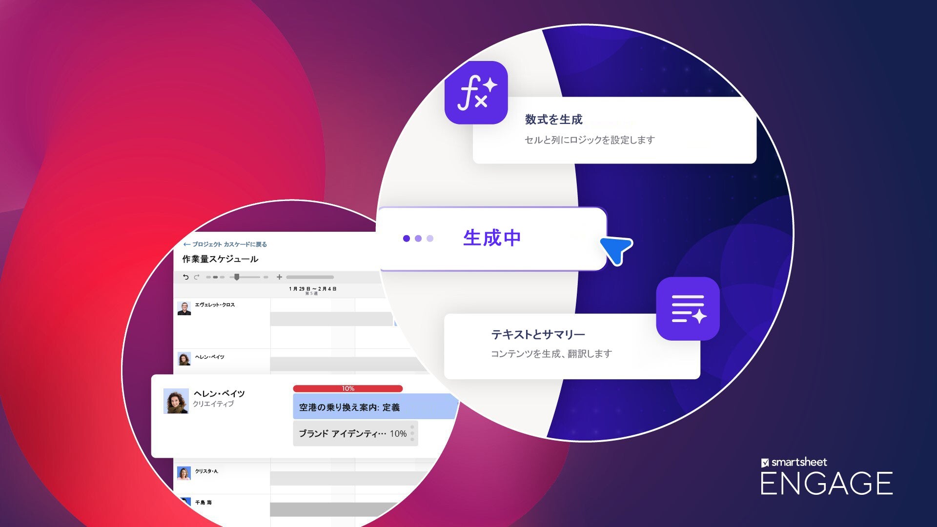 エンタープライズ向け業務管理プラットフォームで業界をリードするSmartsheet(所在地:本社-米国ワシントン州、日本法人-東京都港区、本社CEO:マーク・メーダー、https://jp.smartsheet.com/)は、新しいAIおよびリソース管理機能の一般提供を開始する、Smartsheetプラットフォームのアップデートを発表しました。これにより、組織に実用的な分析、インサイト、優れた可視性を提供し、ユーザーはデータに基づいた適切な意思決定を行うことが可能になります。なおこの発表は、Smartsheetが英ロンドンで初めて開催する顧客カンファレンス「ENGAGE London(https://jp.smartsheet.com/engage)」で紹介されました。